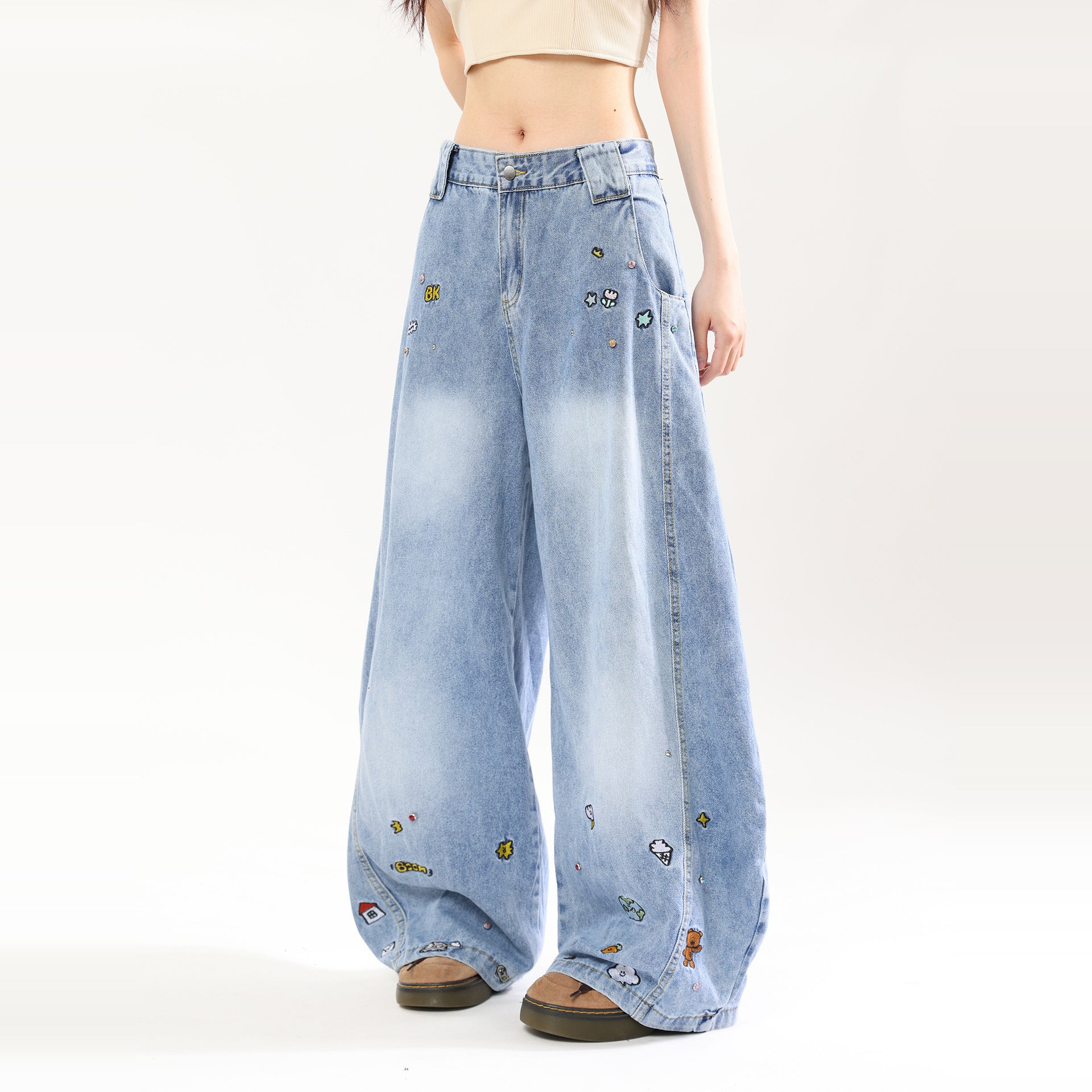 American Retro Cartoon Embroidered Machete Jeans